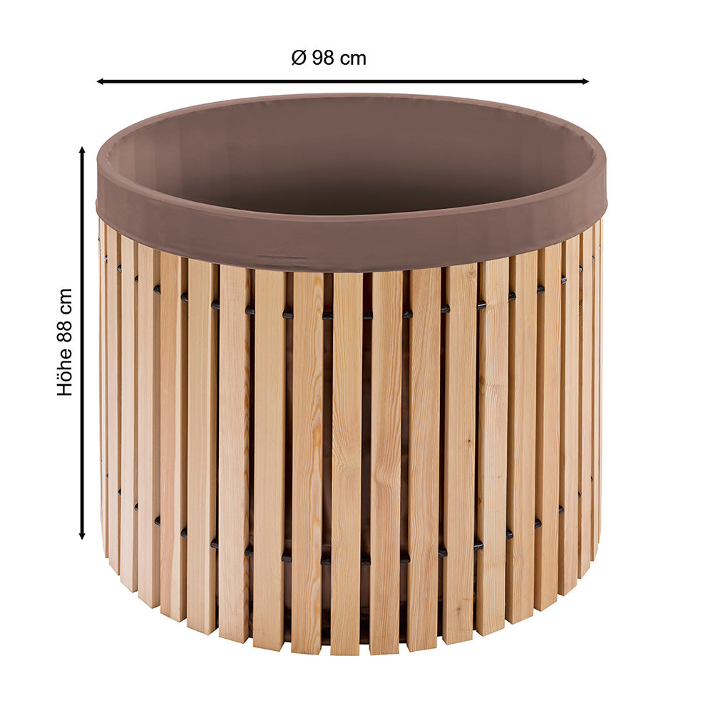 Inhalt: 600 Liter, Ø 98 cm, Höhe: 88 cm.