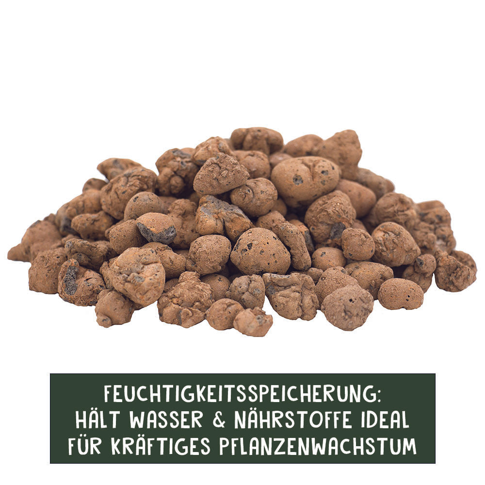 Staunässe ist einer der häufigsten Gründe, warum Pflanzen schwächeln. Eine saubere Drainage sorgt dafür, dass überschüssiges Wasser abfließen kann – und die Wurzeln trotzdem gleichmäßig versorgt werden. Genau dafür ist Tongranulat ideal.